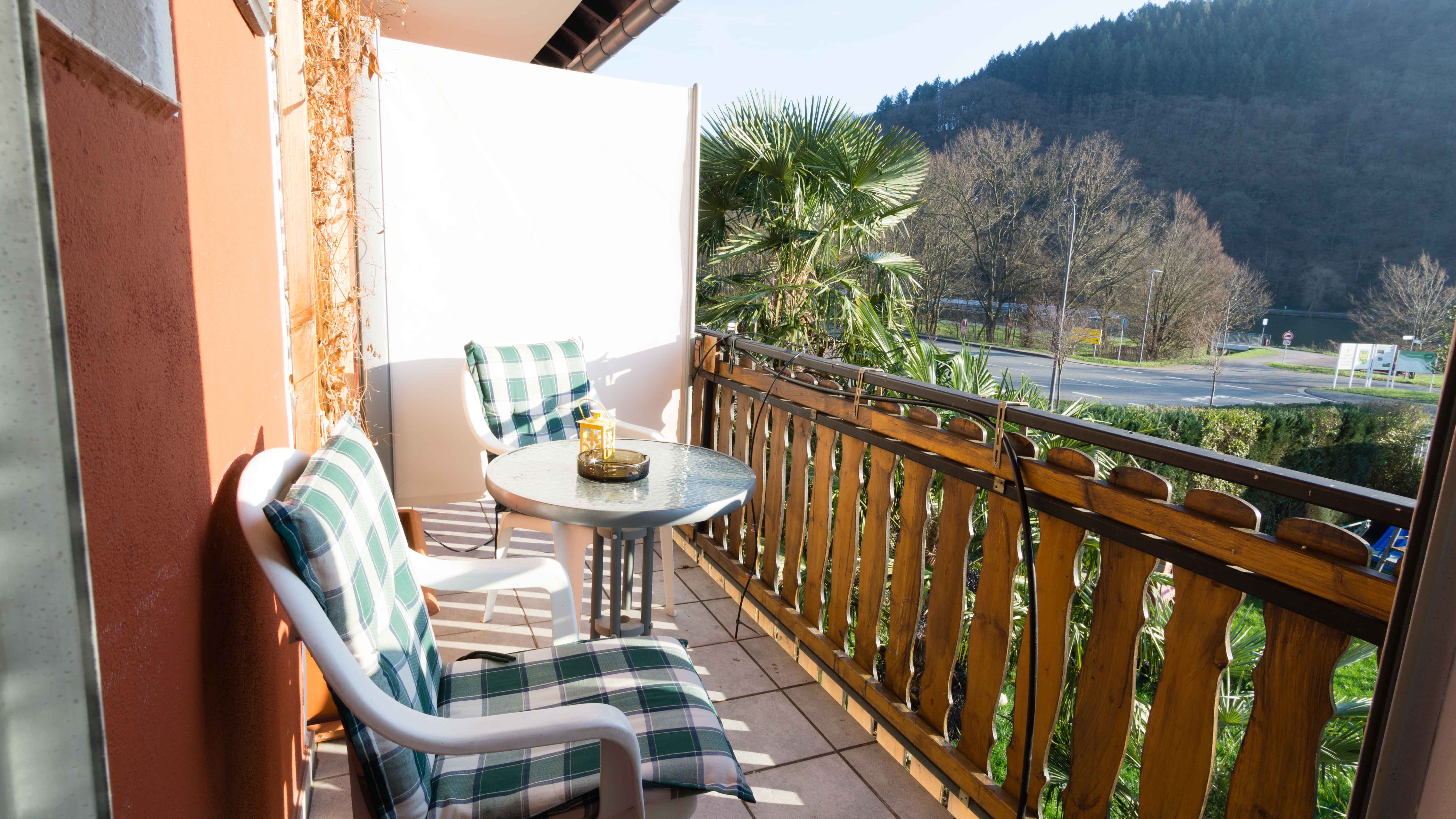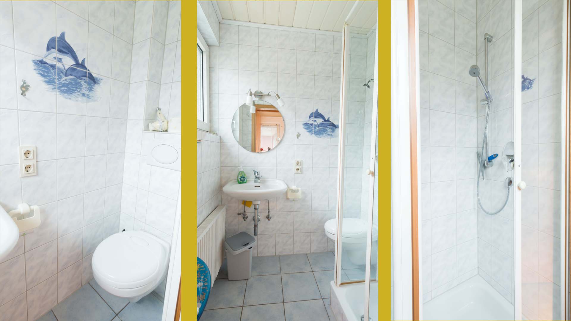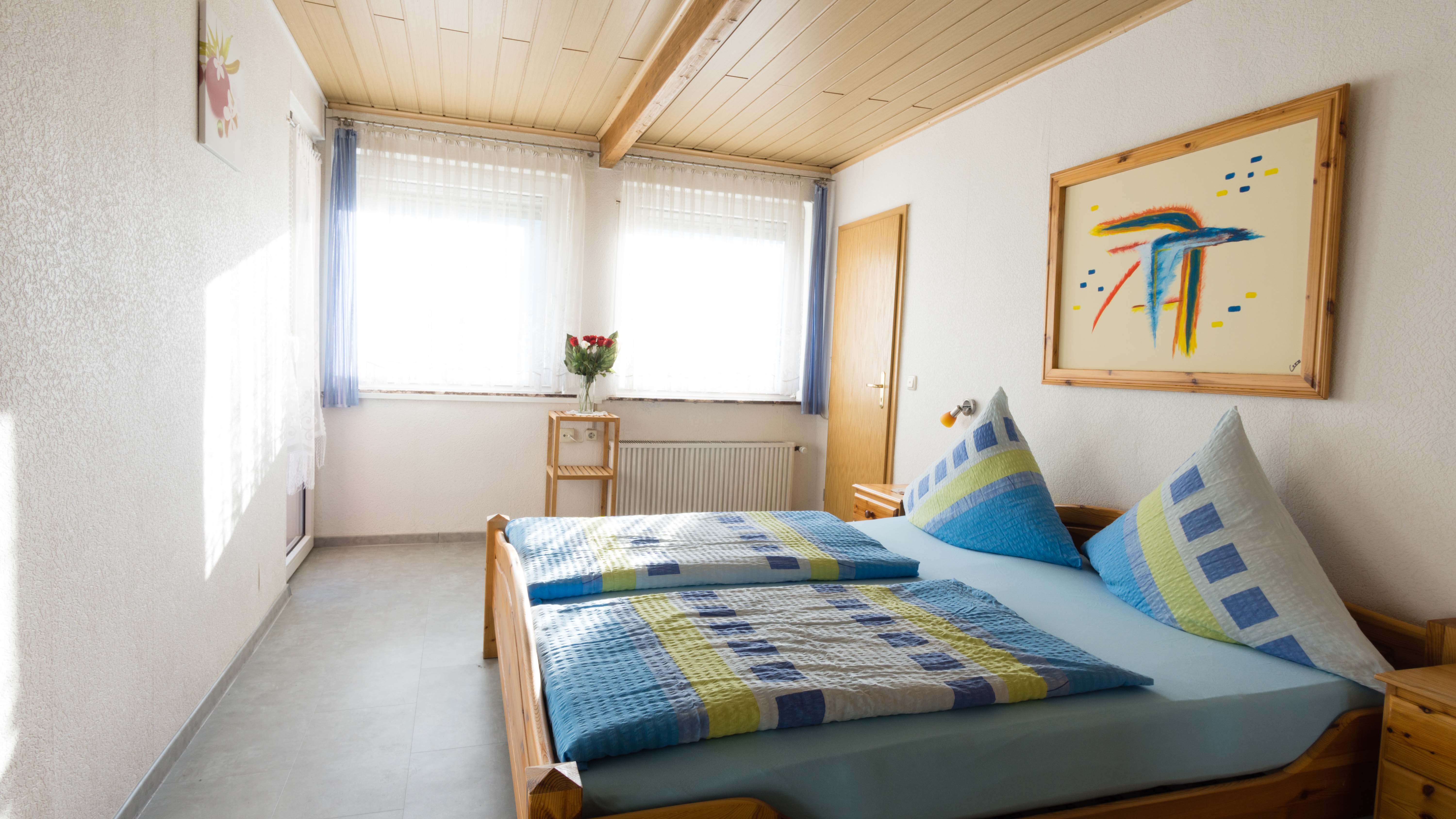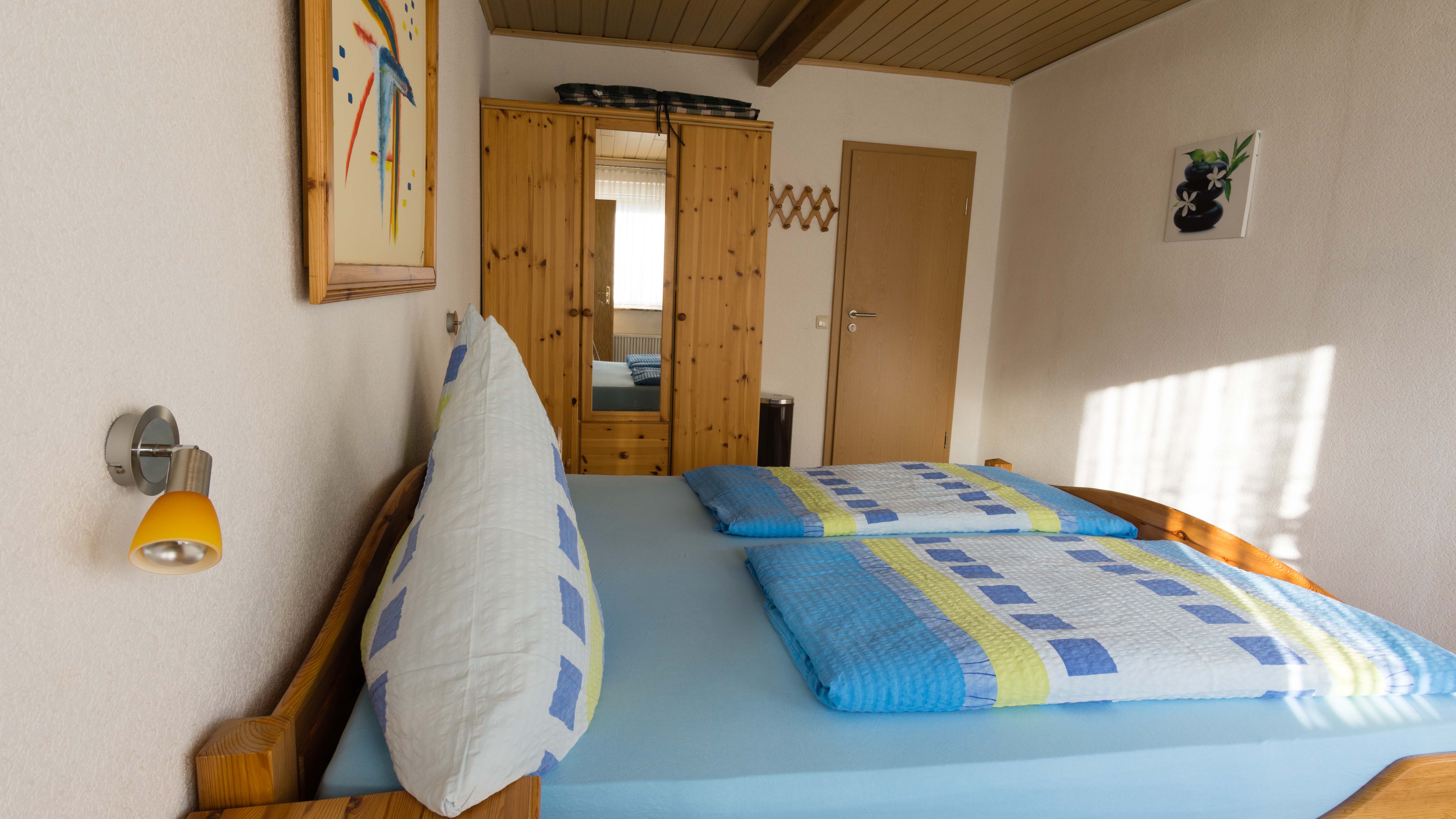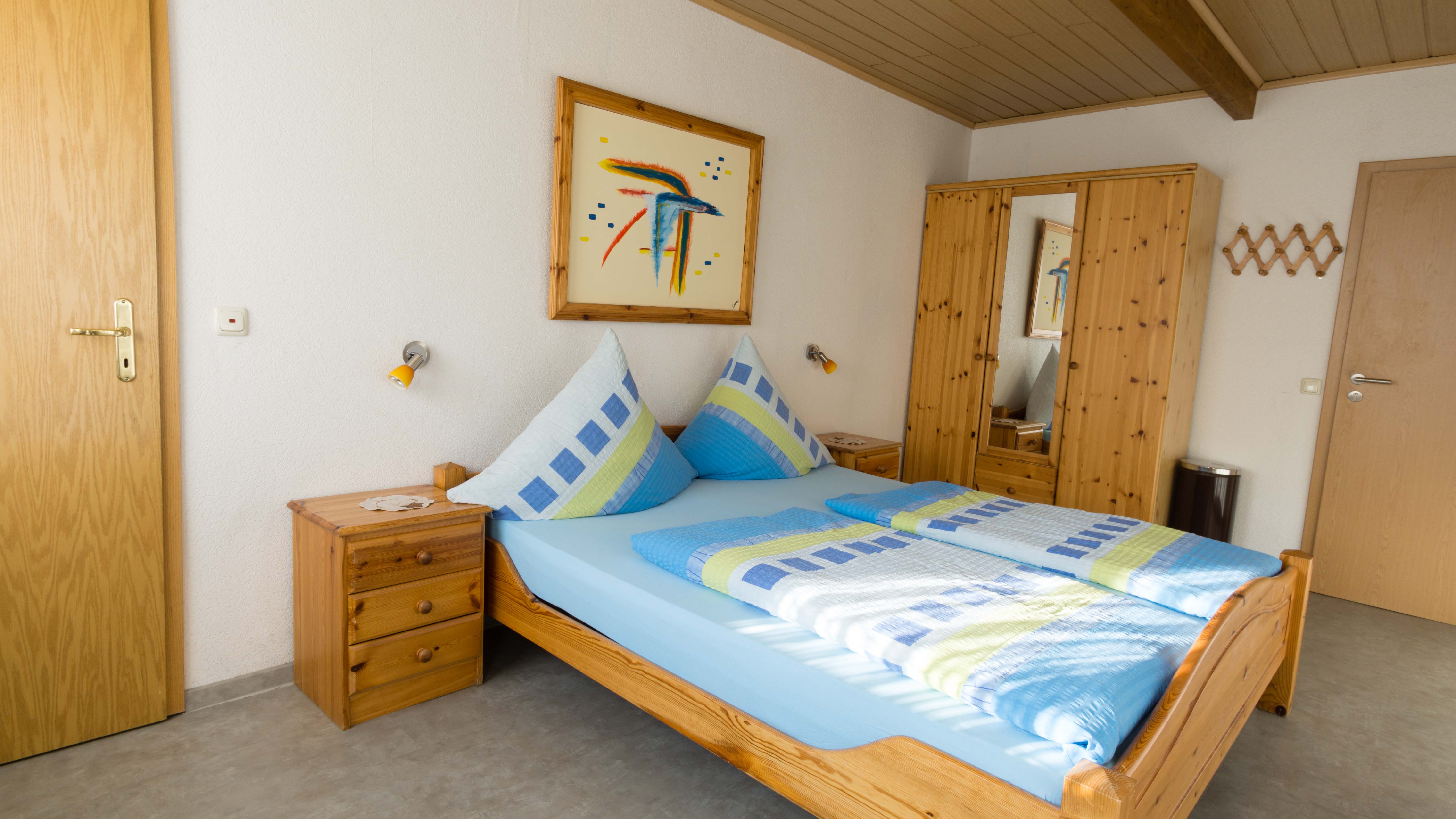 Die etwa 30m² große Wohnung befindet sich im ersten Stockwerk und kann über ein Treppenhaus erreicht werden. Ausgestattet ist die Wohnung mit einer Wohnküche mit Elektroherd, Cerankochfeld, Mikrowelle und einen Kühlschrank mit Gefrierfach. In der Wohnküche befindet sich ein Sofa und ein Sessel. Das Badezimmer grenzt am Schlafzimmer an und verfügt über eine Dusche und WC.