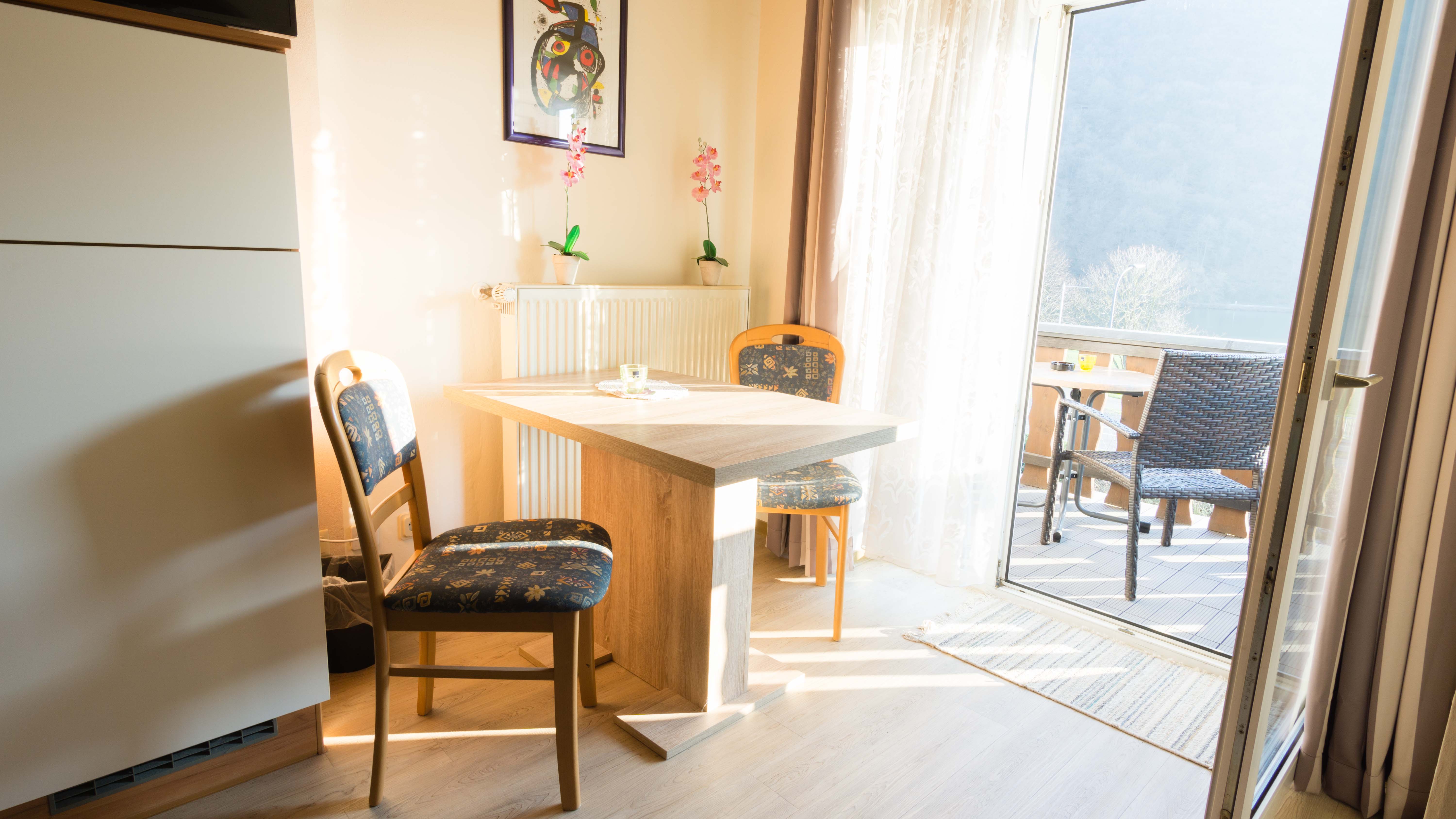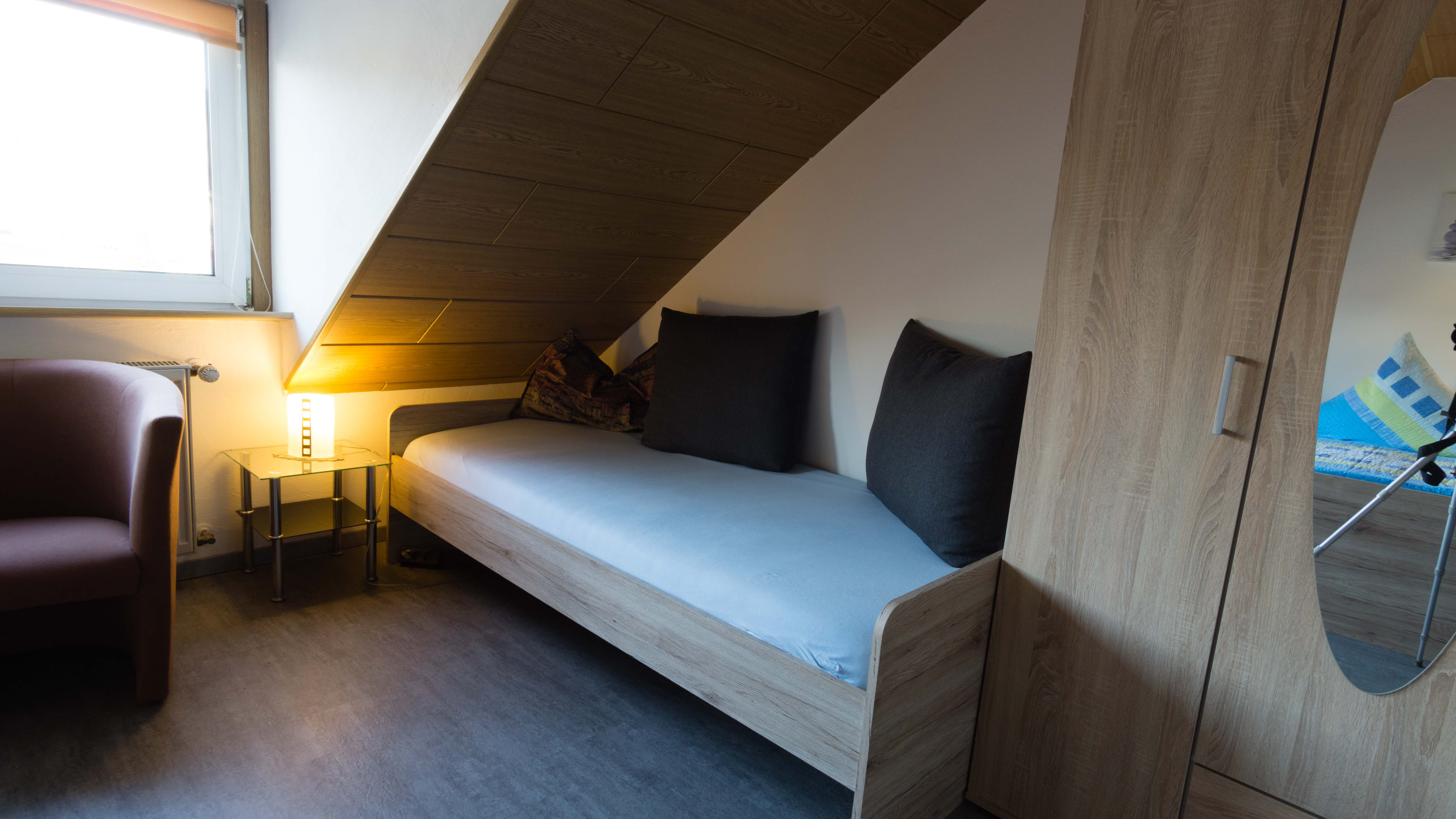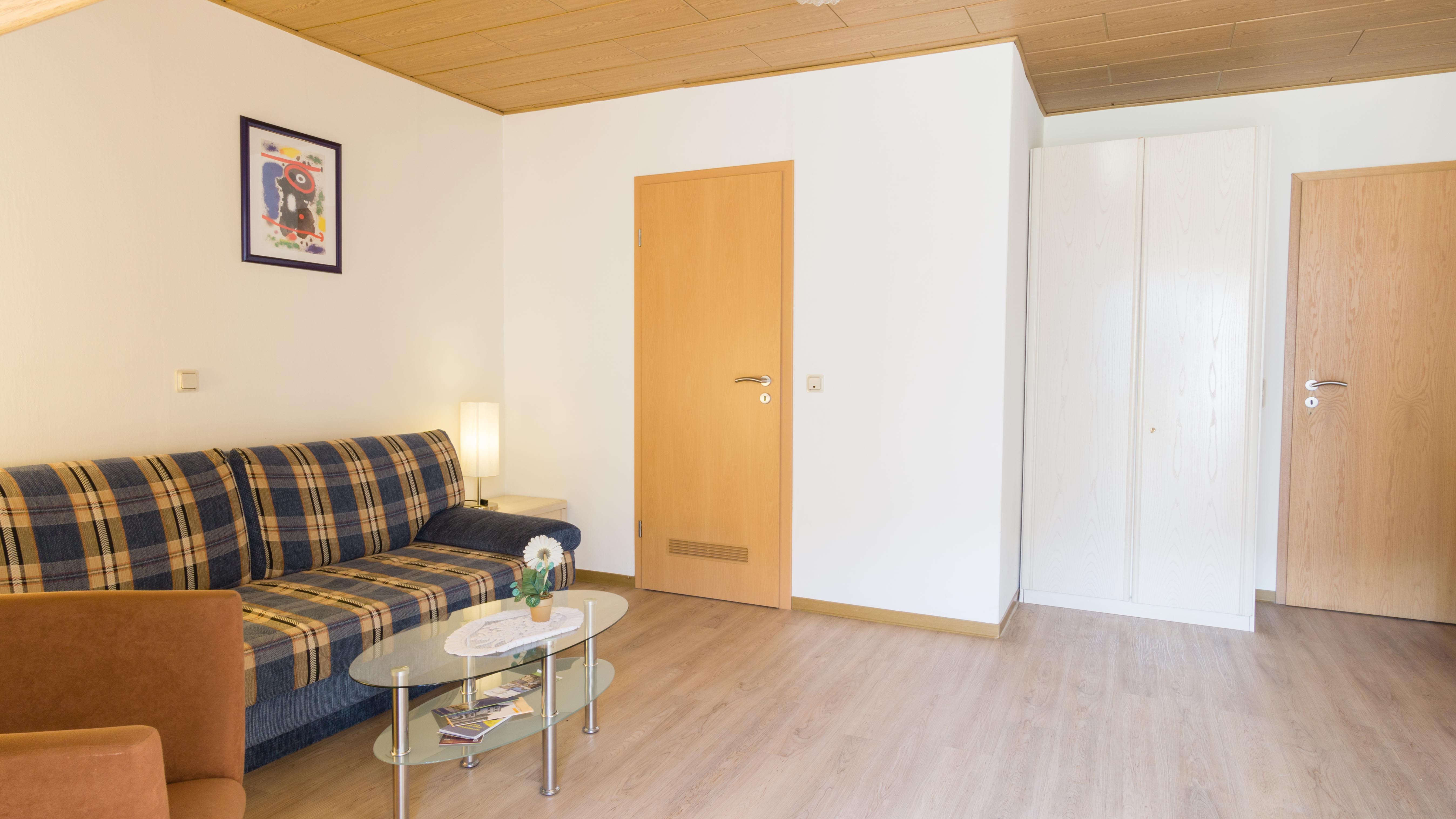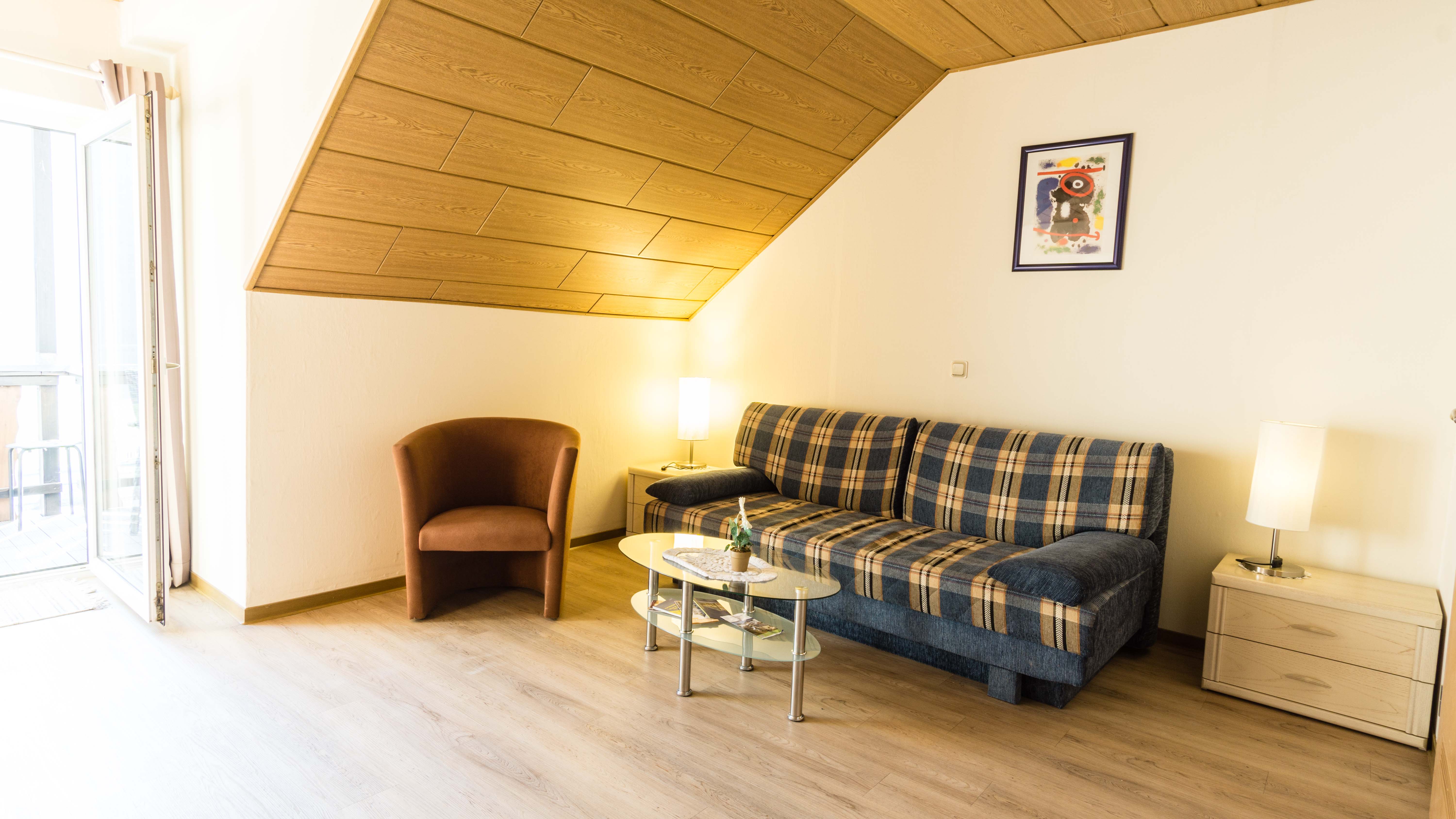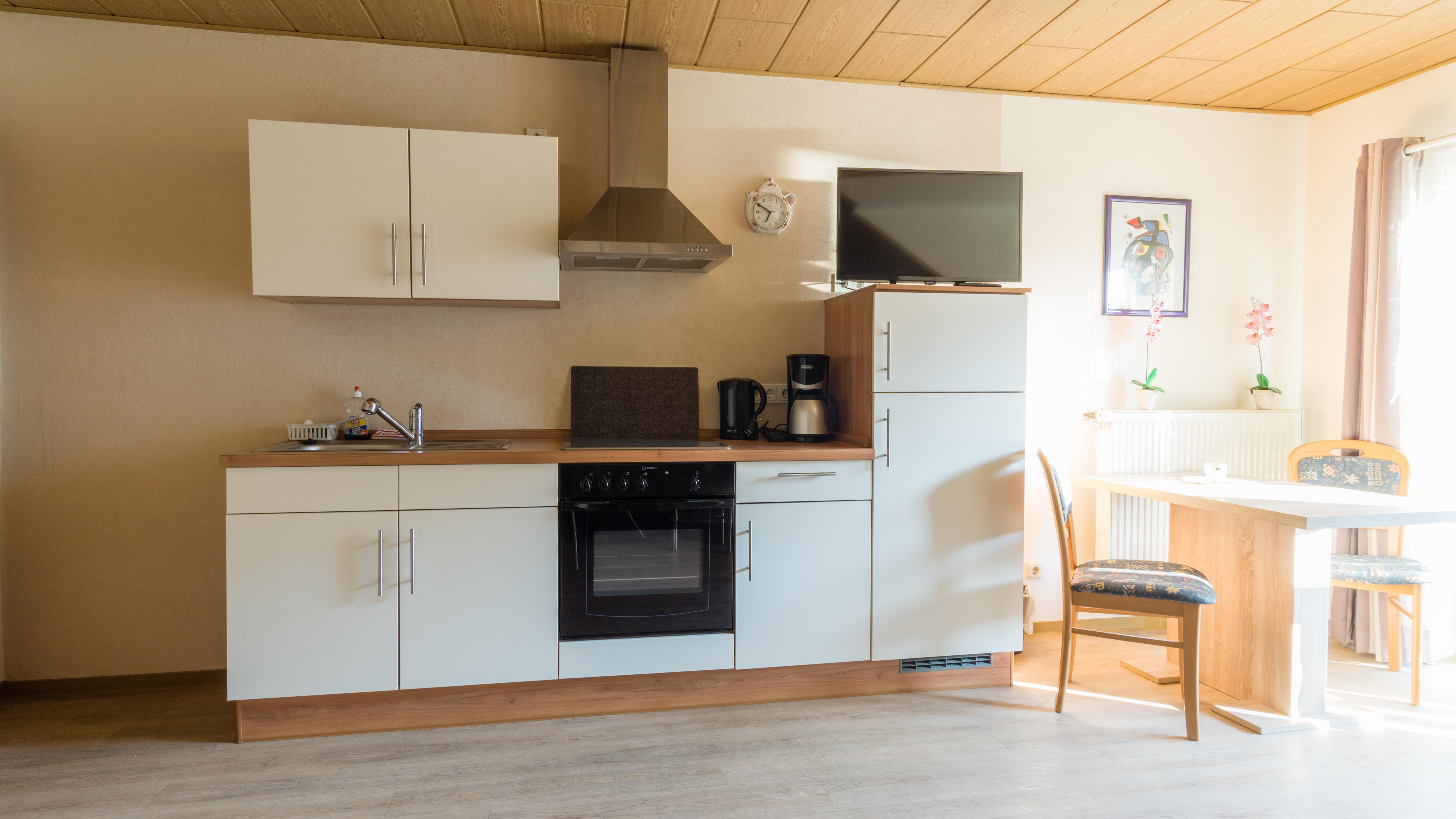 Die etwa 45m² große Wohnung ist ausgestattet mit einer Wohnküche mit Elektroherd, Cerankochfeld, Mikrowelle und einen Kühlschrank mit Gefrierfach. In den Raum befindet sich ein Schlafsofa und ein Fernseher mit SAT Empfang. Das separate Schlafzimmer ist mit einem Doppelbett sowie mit einem Einzelbett ausgestattet. Die Wohnung befindet sich im zweiten Stockwerk.